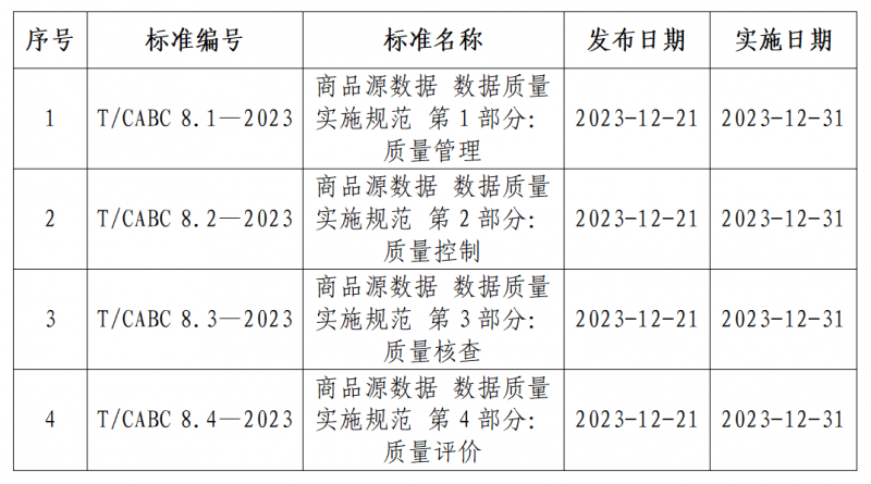 1.《商品源數(shù)據(jù) 數(shù)據(jù)質(zhì)量實(shí)施規(guī)范 第1部分:質(zhì)量管理》(T/CABC 8.1—2023)團(tuán)體標(biāo)準(zhǔn)部分內(nèi)容