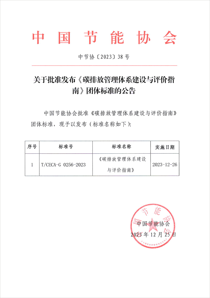 關于批準發布《碳排放管理體系建設與評價指南》團體標準的公告.PDF