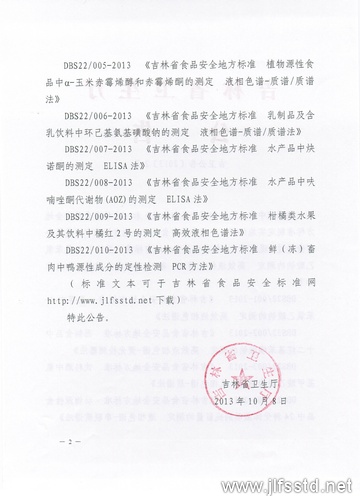 (標準文本可于吉林省食品安全標準網http://www.jlfsstd.net下載)
