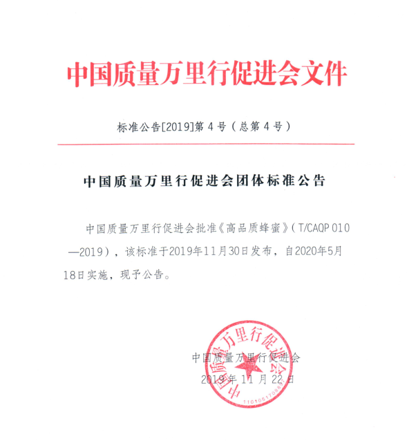 《茅臺鎮(zhèn)小產(chǎn)區(qū)經(jīng)典醬香白酒標(biāo)準(zhǔn)》(T/CAQP 011-2019)、《高品質(zhì)蜂蜜》(T/CAQP 010-2019)
