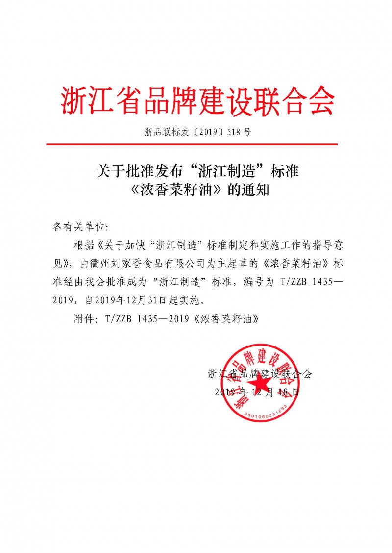 以上為浙江省品牌建設聯合會關于批準發布“浙江制造”標準《濃香菜籽油》的通知(浙品聯標發〔2019〕518號)的檢測服務介紹,如有其他疑問可聯系在線工程師!
