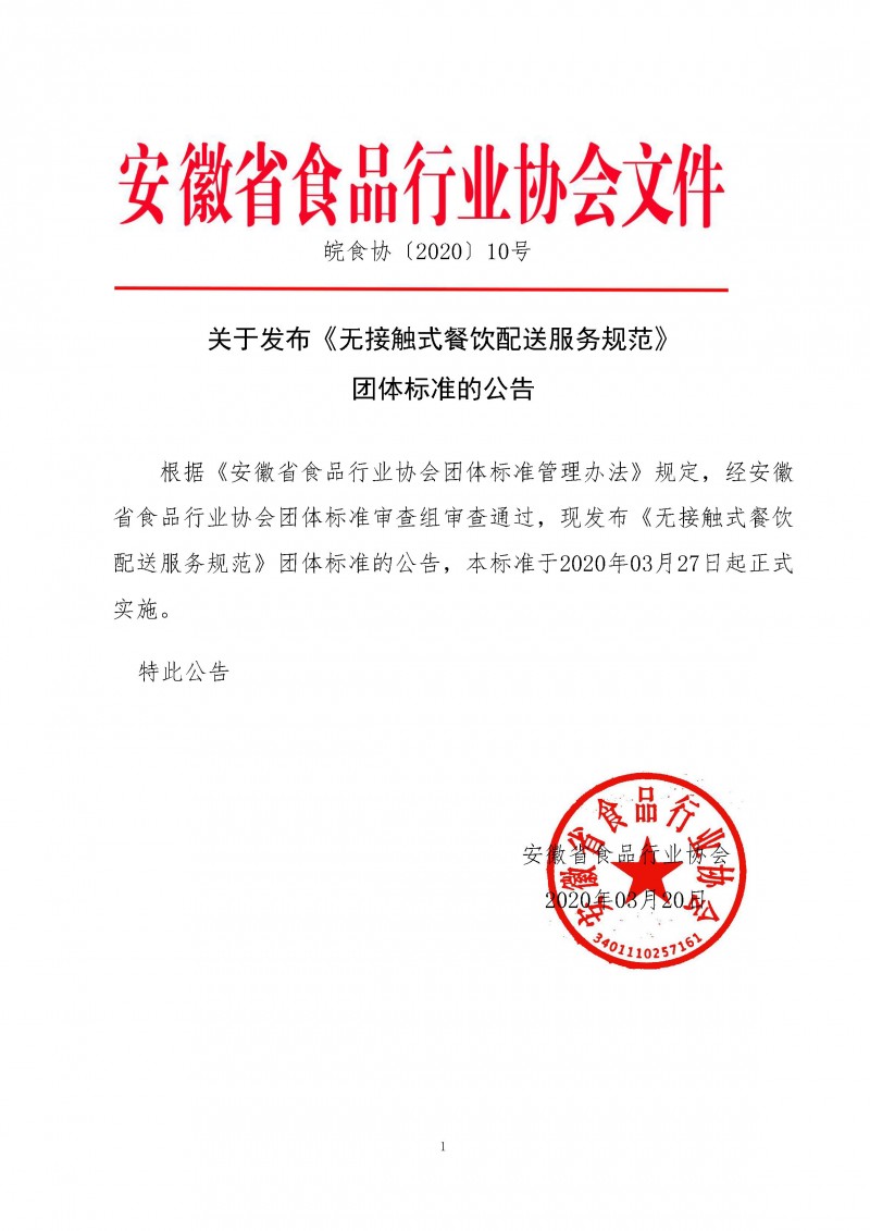 以上為安徽省食品行業協會關于發布《無接觸式餐飲配送服務規范》 團體標準的公告(皖食協〔2020〕10號)的檢測服務介紹,如有其他疑問可聯系在線工程師!