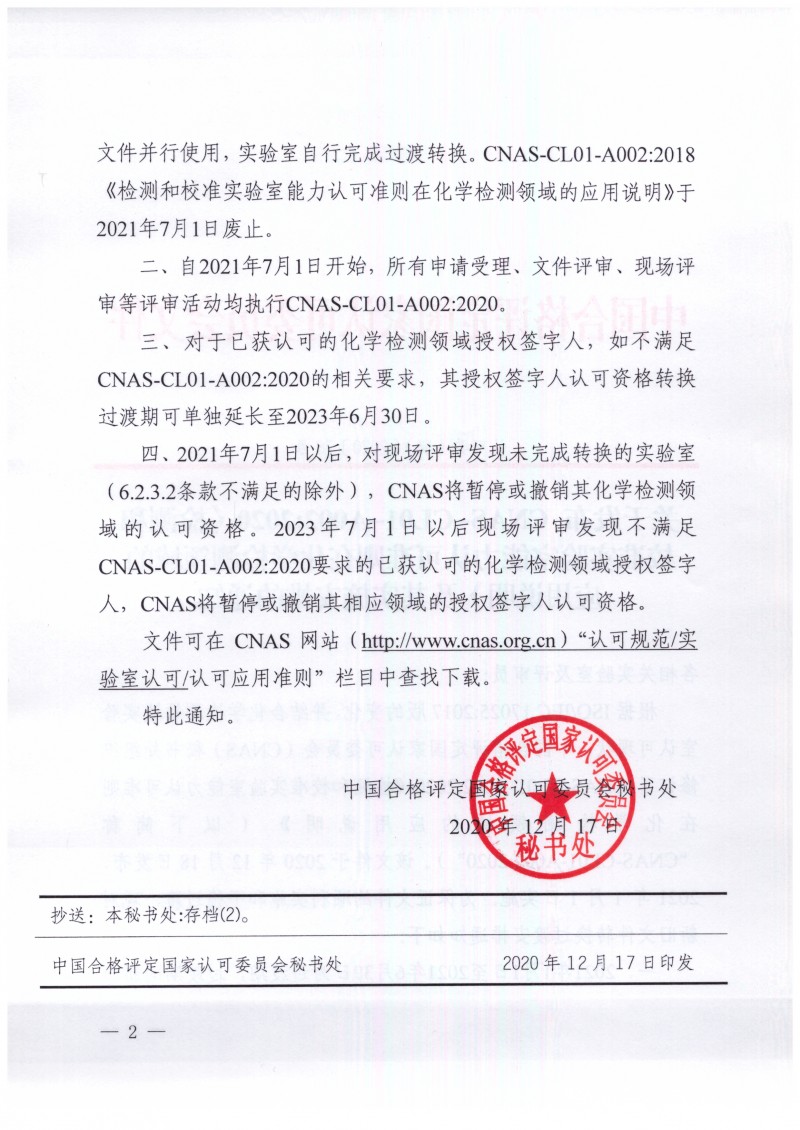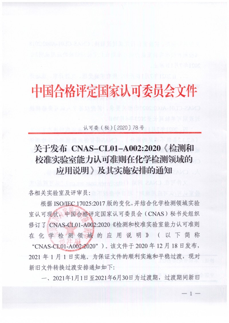 以上為中國合格評定國家認可委員會關于CNAS-CL01-A002 化學應用說明修訂發布通知(認可委(秘)〔2020〕78號)的檢測服務介紹,如有其他疑問可聯系在線工程師!