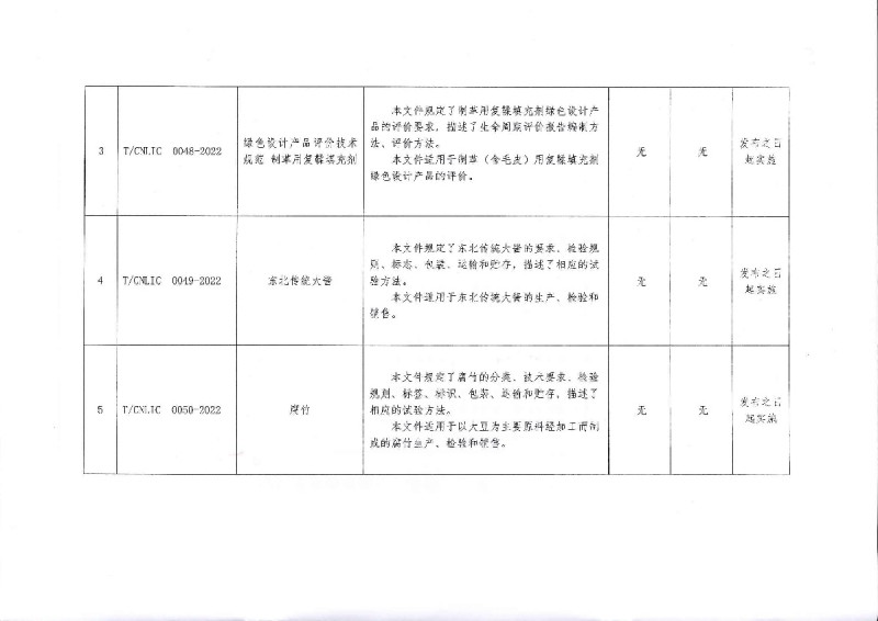 T/CNLIC 0046-2022 綠色設(shè)計產(chǎn)品評價技術(shù)規(guī)范 軟水機 T/CNLIC 0047-2022 綠色設(shè)計產(chǎn)品評價技術(shù)規(guī)范 凈化加熱一體式直飲機 T/CNLIC 0049-2022 東北傳統(tǒng)六醬 T/CNLIC 0050-2022 腐竹 T/CNLIC 0052-2022 綠色設(shè)計產(chǎn)品評價技術(shù)規(guī)范 聚丙烯壓延薄膜與片材 T/CNLIC 0056-2022 家用電器行業(yè)綠色工廠評價導(dǎo)則