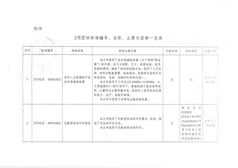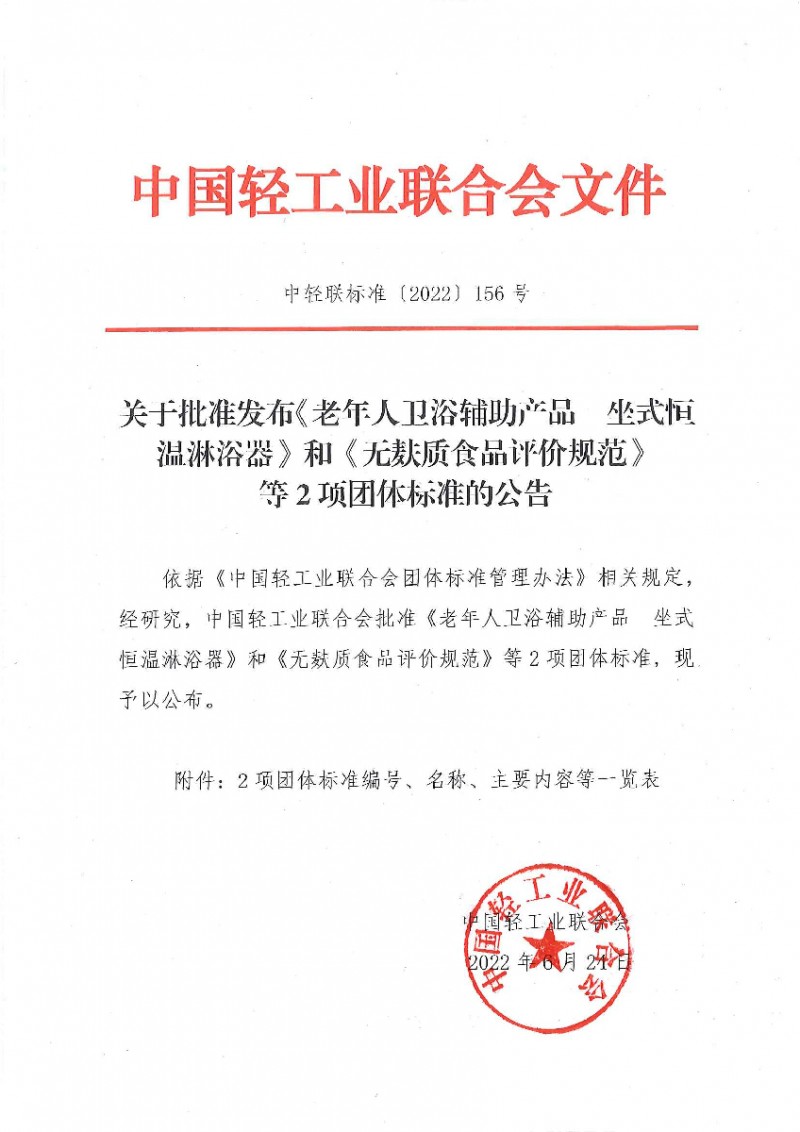 以上為中國輕工業聯合會關于批準發布《老年人衛浴輔助產品 坐式恒溫淋浴器》和《無麩質食品評價規范》等2項團體標準的公告(中輕聯標準[2022]156號)的檢測服務介紹,如有其他疑問可聯系在線工程師!