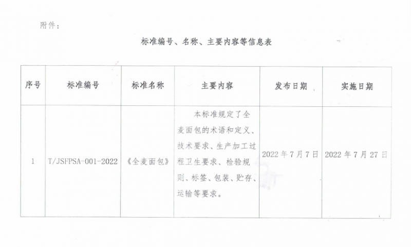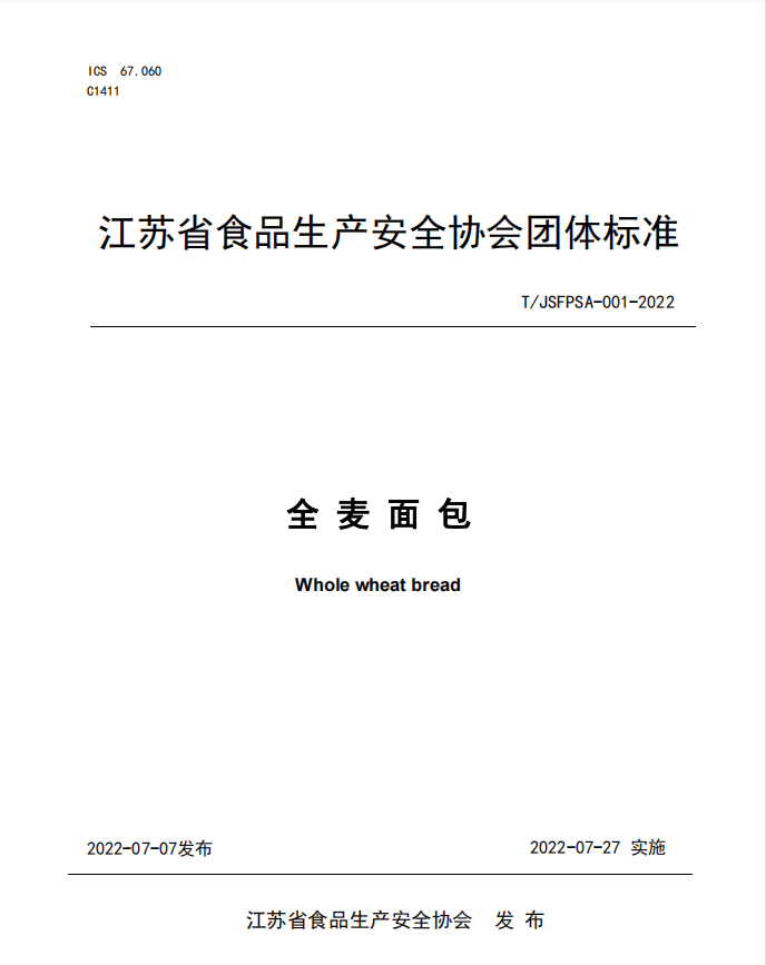 根據《中華人民共和國標準化法》以及國家標準化管理委員會、民政部《團體標準管理規(guī)定》的有關規(guī)定,江蘇省食品生產安全協會批準發(fā)布《全麥面包》團體標準(標準編號、名稱、主要內容等見附件),現予公告,自2022年7月27日起實施。