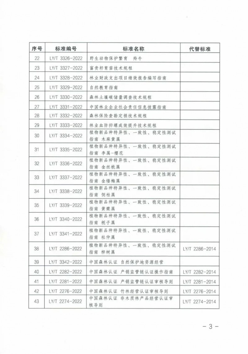 | 18 | LY/T 2282-2022 中國森林認證產銷監管鏈認證操作指南 | LY/T 2282-2014 |
