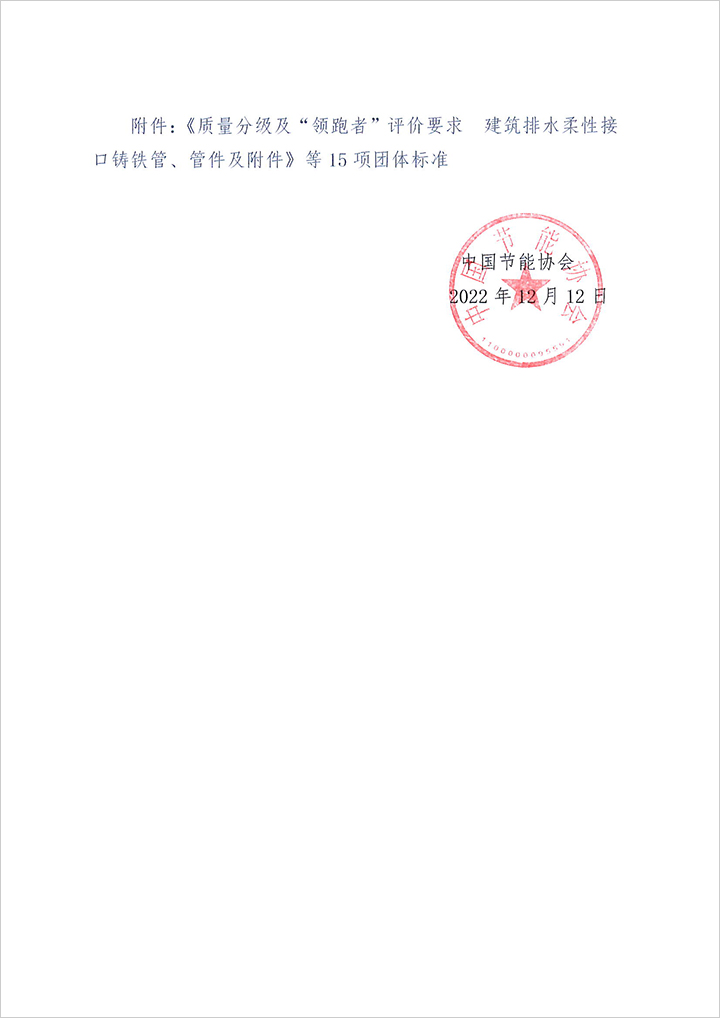 關(guān)于批準(zhǔn)發(fā)布《質(zhì)量分級及“領(lǐng)跑者”評價(jià)要求 建筑排水柔性接口鑄鐵管、管件及附件》等15項(xiàng)團(tuán)體標(biāo)準(zhǔn)的公告.PDF