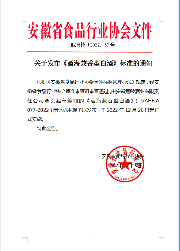 以上為安徽省食品行業協會關于發布《酒海兼香型白酒》標準的通知(皖食協〔2022〕53號)的檢測服務介紹,如有其他疑問可聯系在線工程師!