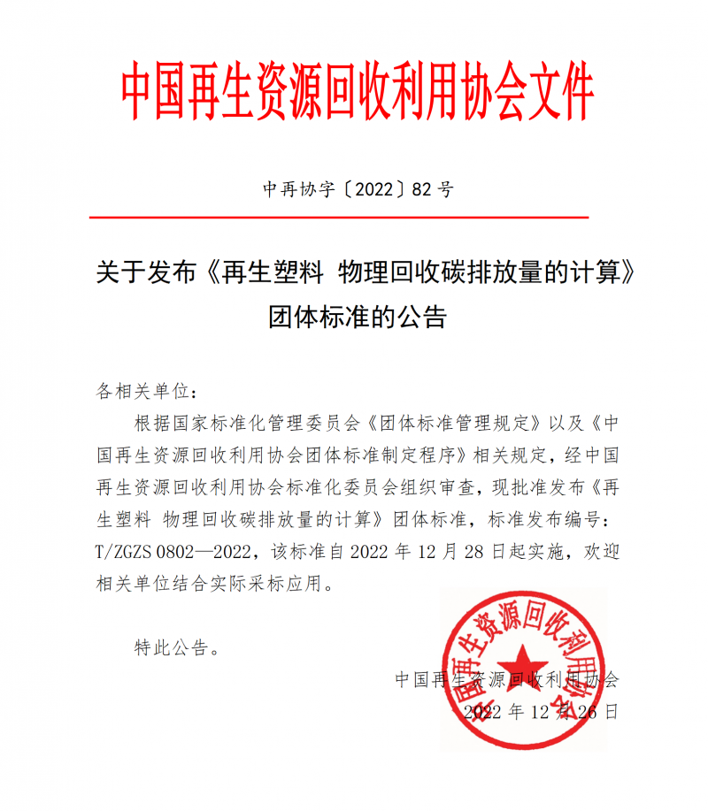 以上為中國再生資源回收利用協(xié)會關于發(fā)布《再生塑料物理回收碳排放量的計算》團體標準的公告(中再協(xié)字〔2022〕82號)的檢測服務介紹,如有其他疑問可聯(lián)系在線工程師!