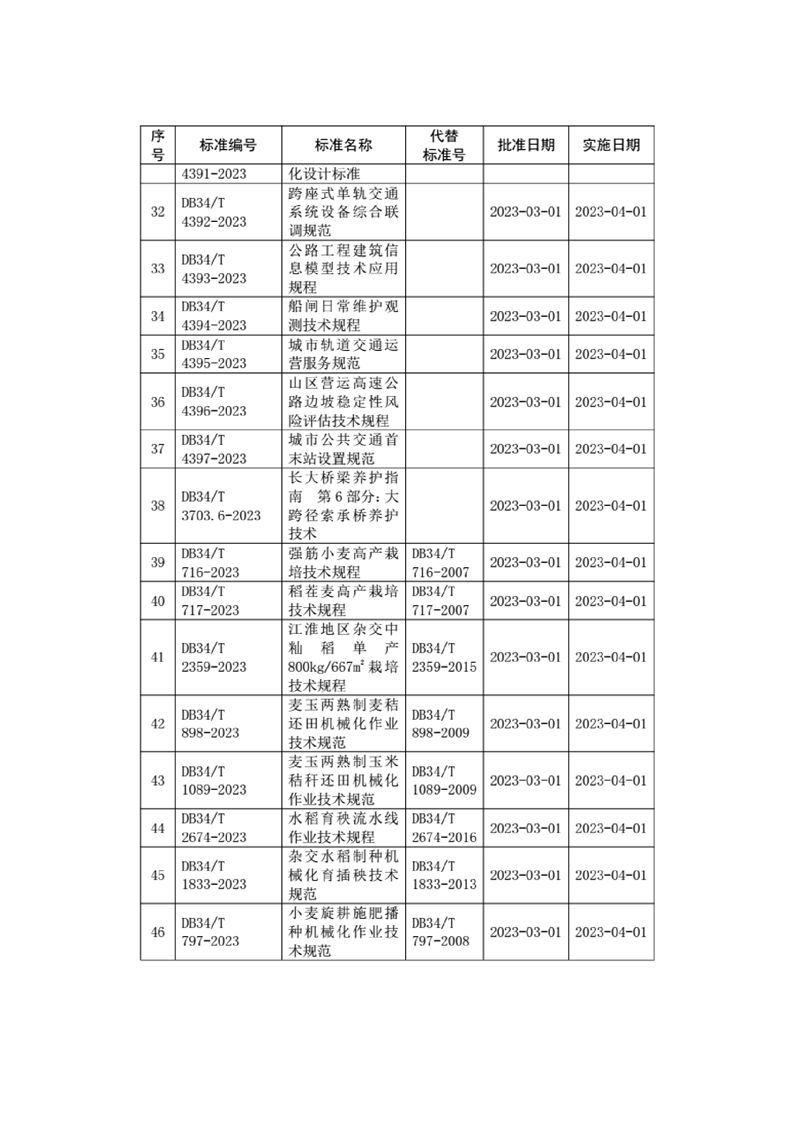 | DB34/T 717-2023 | 稻茬麥高產栽培技術規程 | DB34/T 717-2007 | 2023-03-01 | 2023-04-01 |