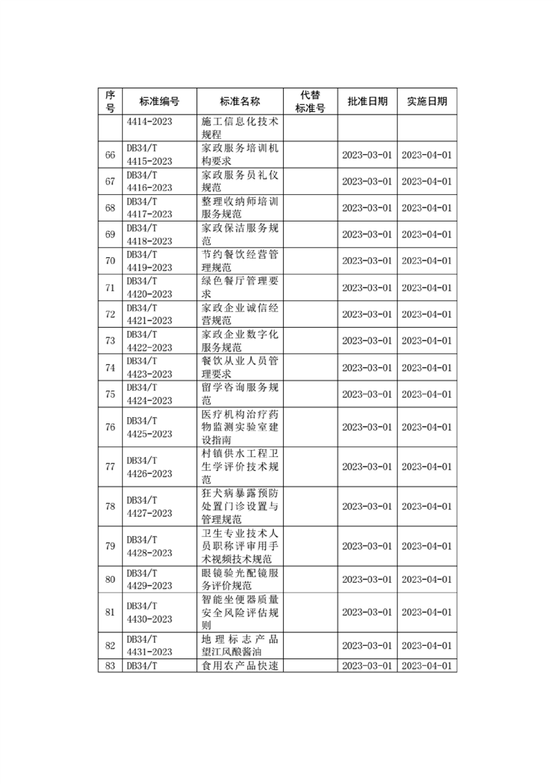 | DB34/T 4423-2023 | 餐飲從業人員管理要求 | 2023-03-01 | 2023-04-01 |