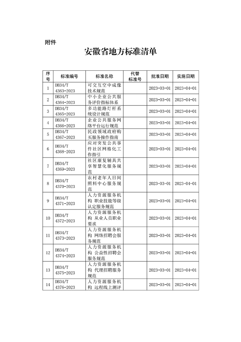 | DB34/T 4364-2023 | 中小企業公共服務評價指標體系 | 2023-03-01 | 2023-04-01 | |
