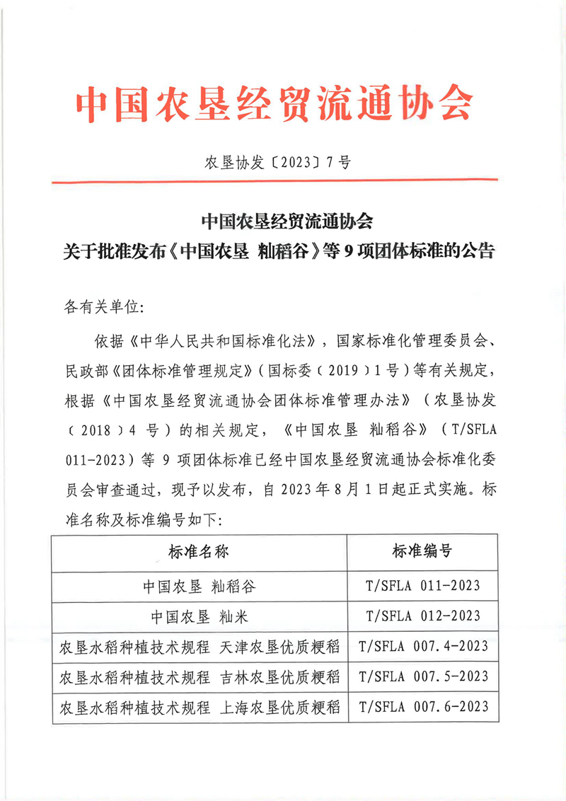 | T/SFLA 012-2023 | 中國農(nóng)墾 秈米 |