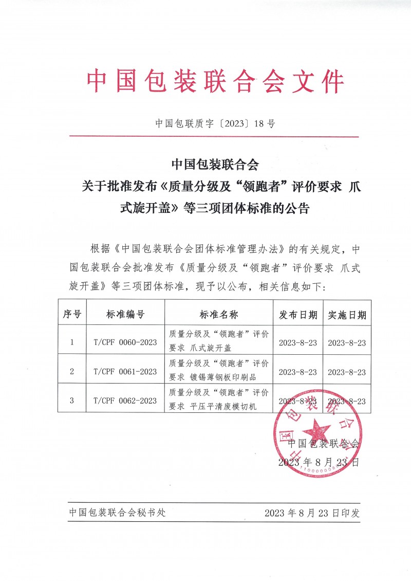 T/CPF 0060-2023 質(zhì)量分級(jí)及“領(lǐng)跑者”評(píng)價(jià)要求 爪式旋開(kāi)蓋