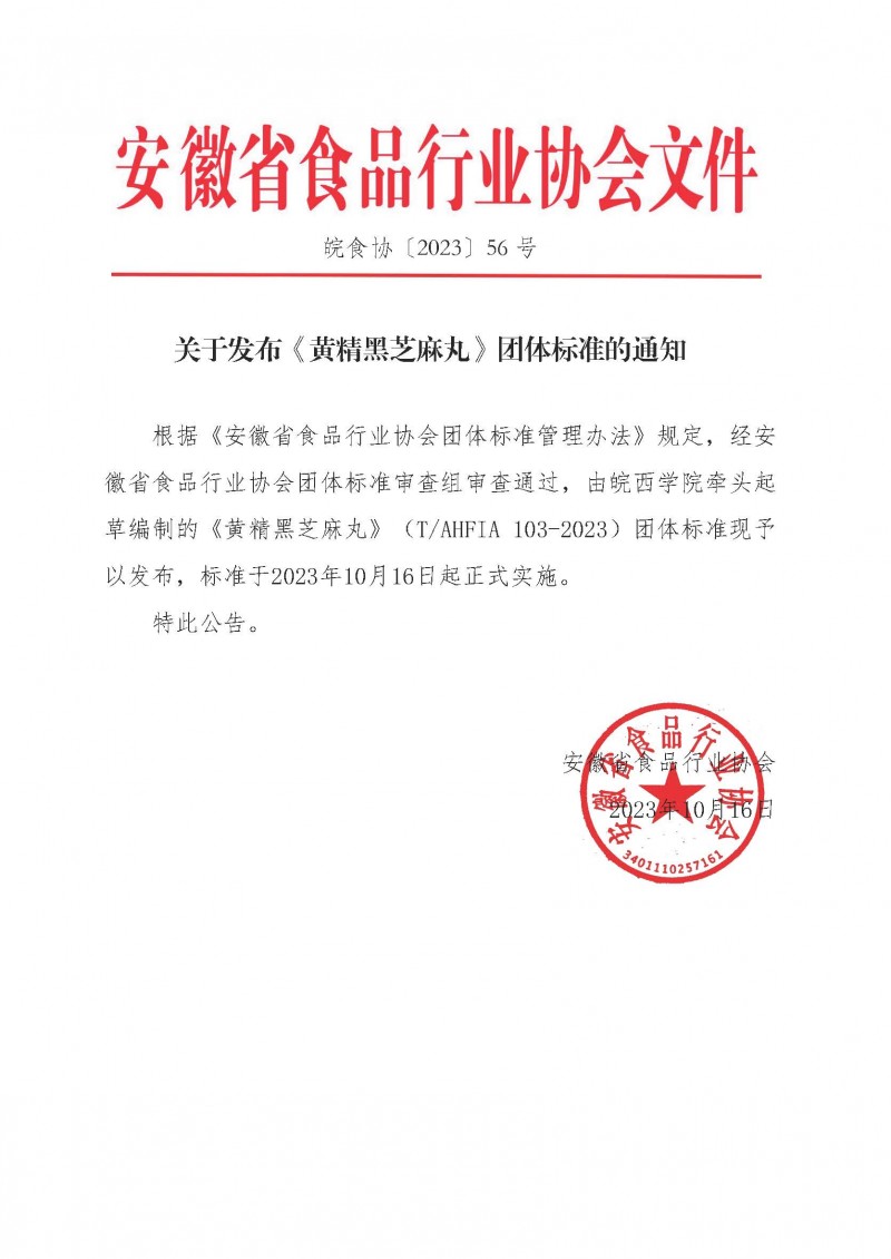 T/AHFIA 103-2023 黃精黑芝麻丸