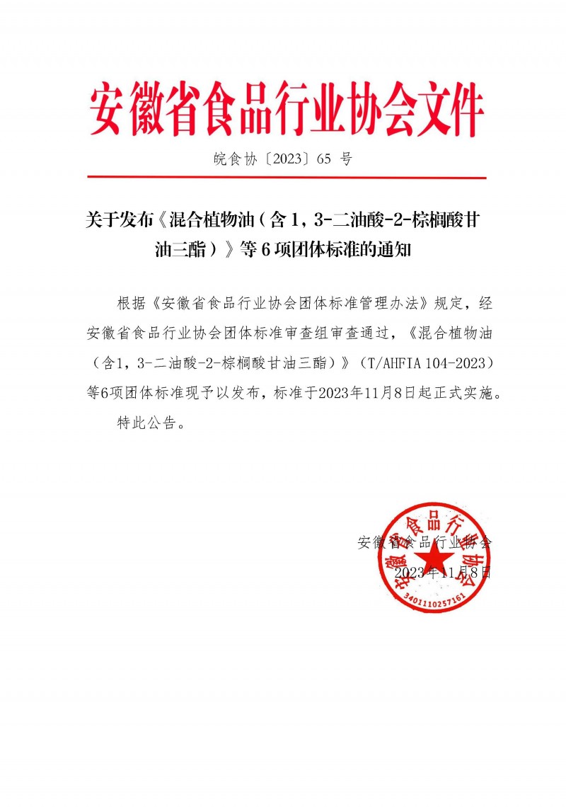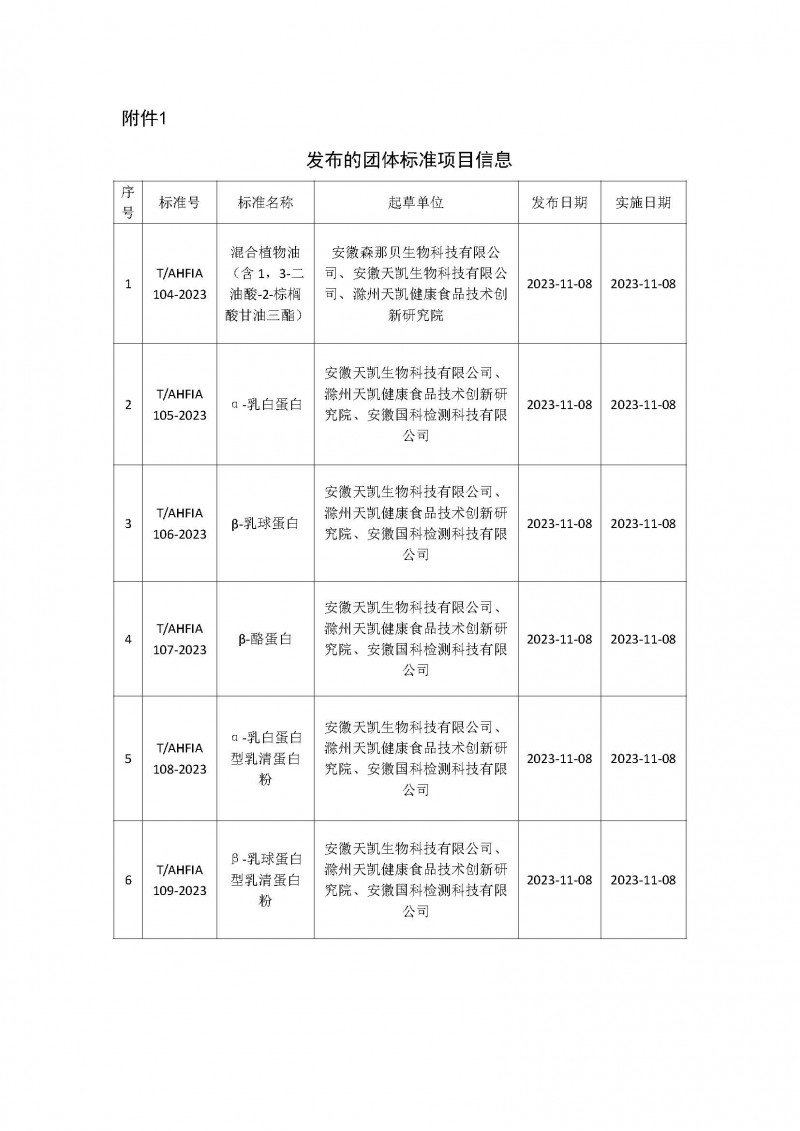T/AHFIA 104-2023 混合植物油(含1,3-二油酸-2-棕櫚酸甘油三酯) T/AHFIA 105-2023 α-乳白蛋白 T/AHFIA 106-2023 β-乳球蛋白 T/AHFIA 107-2023 β-酪蛋白 T/AHFIA 108-2023 α-乳白蛋白型乳清蛋白粉 T/AHFIA 109-2023 β-乳球蛋白型乳清蛋白粉